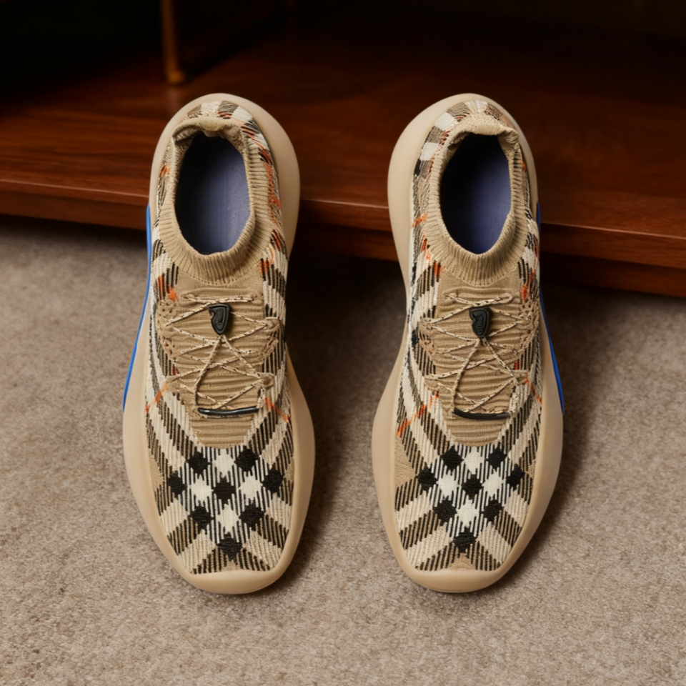 Burberries Luxury Designer Lace-Up Loafers Sneakers Men Women Plaid Pattern Knit Midsole Rubber Outsole Light Weight Soft