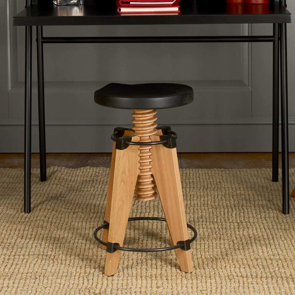 Burgu Black Bar Stool Adjustable Height Solid Wood Seat Metal Legs Modern Design Color Options for Dining Living Room & Home Use