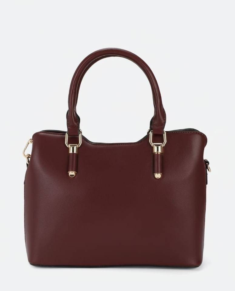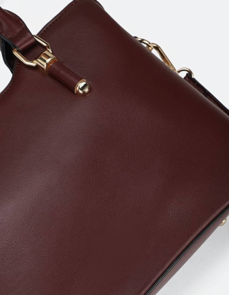 Burgundy Genuine Leather Fashion Tote Bag Women Structured Top Handle Satchel Candy Zipper Two Elegant Red Brown Shoulder Purse
