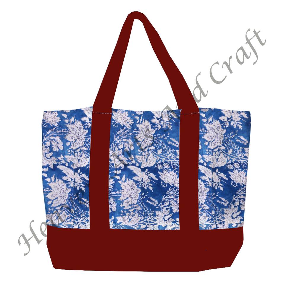 Burgundy Handle Block Printed Tote Shopping Bag India Multi-Hand Floral Design Durable Two Shoulder Straps Wholesale BHCB123