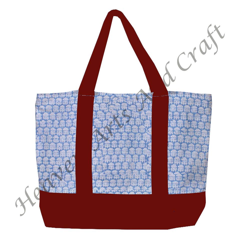 Burgundy Handle Block Printed Tote Shopping Bag India Multi-Hand Floral Design Durable Two Shoulder Straps Wholesale BHCB025