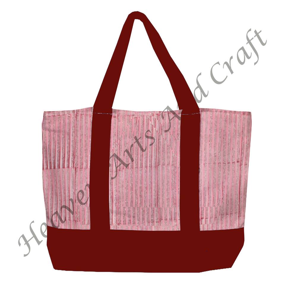 Burgundy Handle Block Printed Tote Shopping Bag India Multi-Hand Floral Design Durable Two Shoulder Straps Wholesale BHCB009