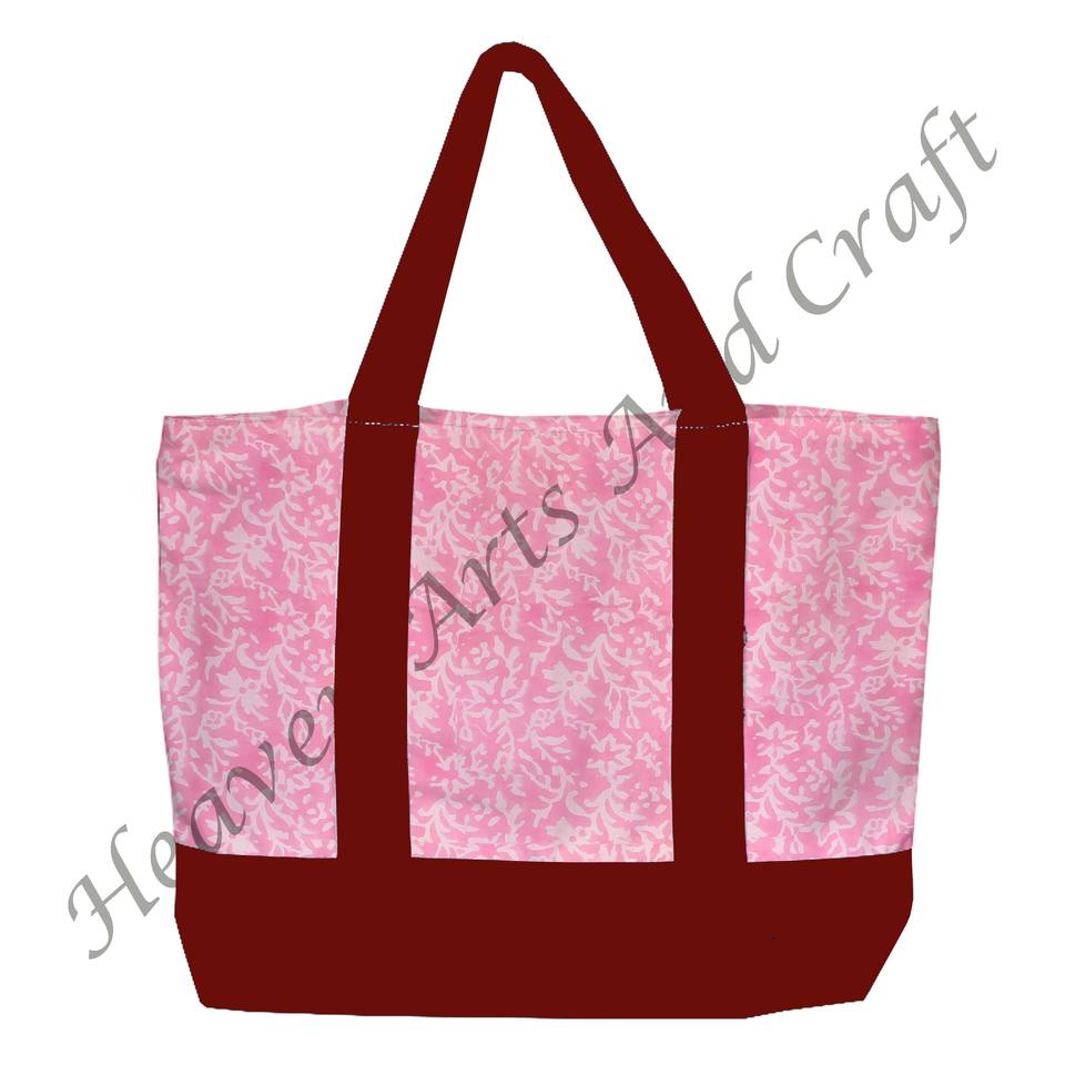Burgundy Handle Block Printed Tote Shopping Bag India Multi-Hand Floral Design Durable Two Shoulder Straps Wholesale BHCB038