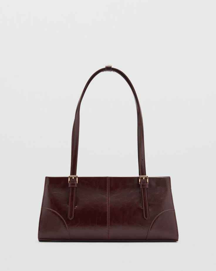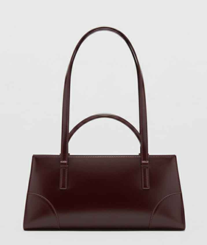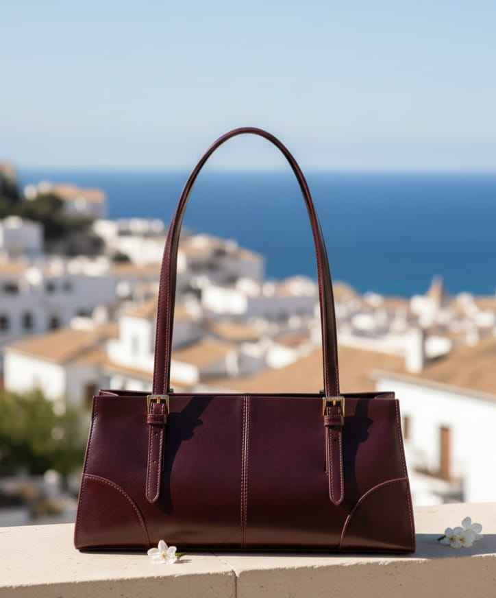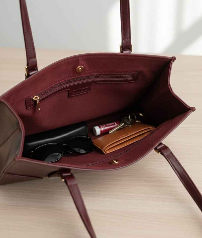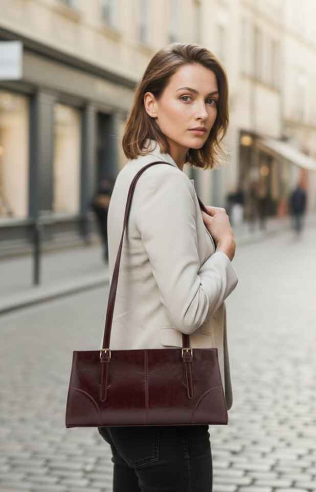 Burgundy Leather Women's Shoulder Bag Vintage 90s Style Minimalist Handbag Y2K Trendy Tote Adjustable Strap Water Resistant ZIP
