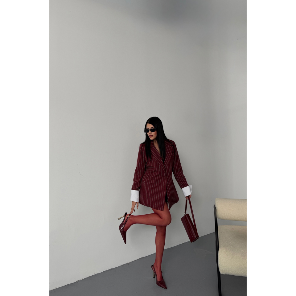 Burgundy Vintage Floral Embroidered Leather Jacket Single-Button XL with Ecru Cuffs Silk Lining Cotton Filling for Spring Autumn