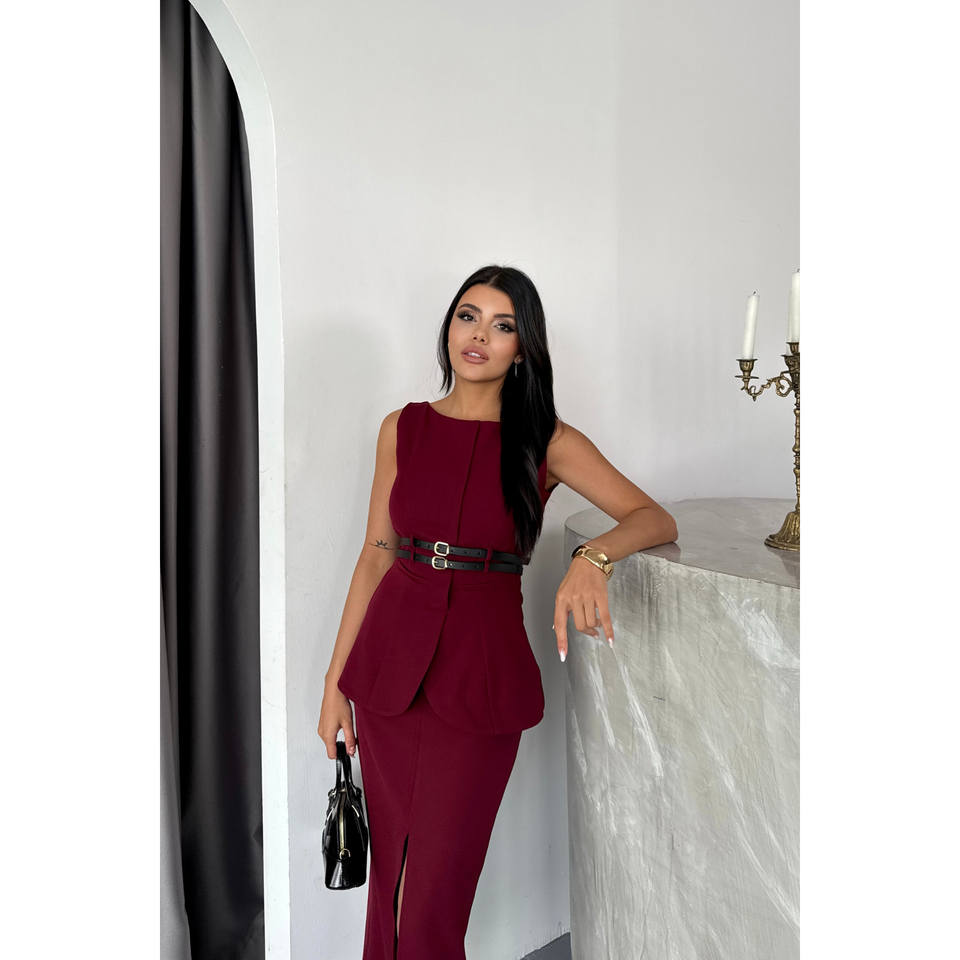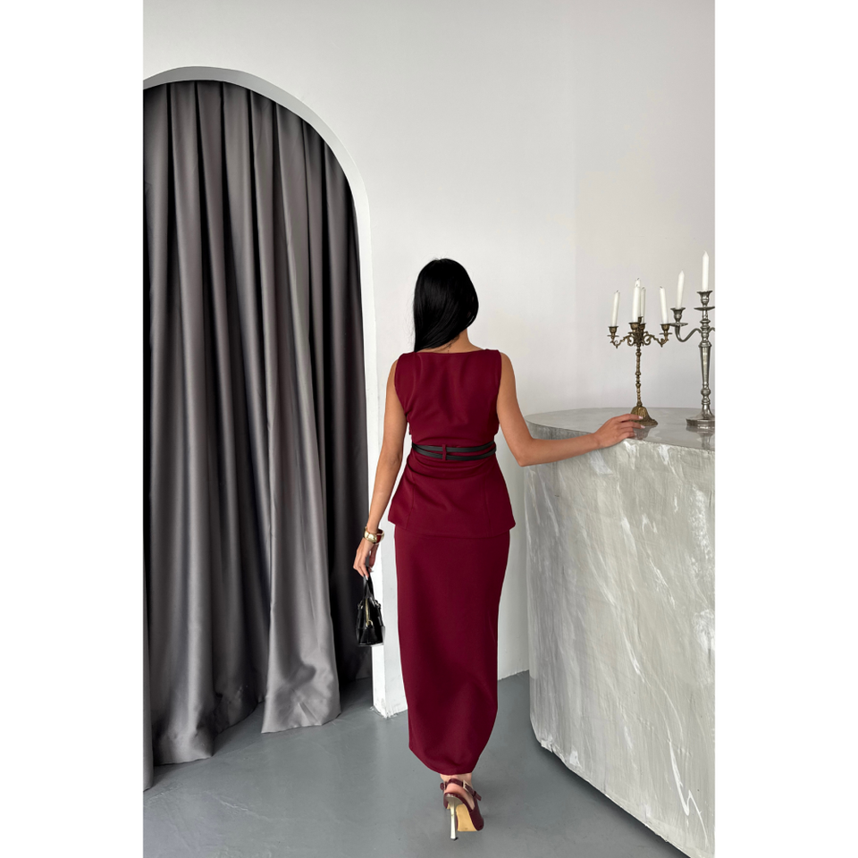 Burgundy Women's Jacket-Style Dress with Double Belt Detail