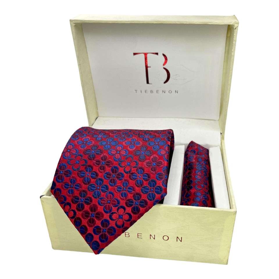Burgundy and Blue Dotted Tie and Pocket Square Combo Elegant Handkerchief Set