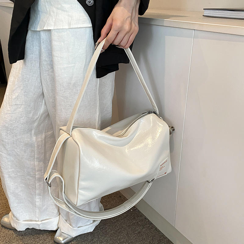 Burgundy shiny shoulder bag, large capacity design, women's fashionable handbag