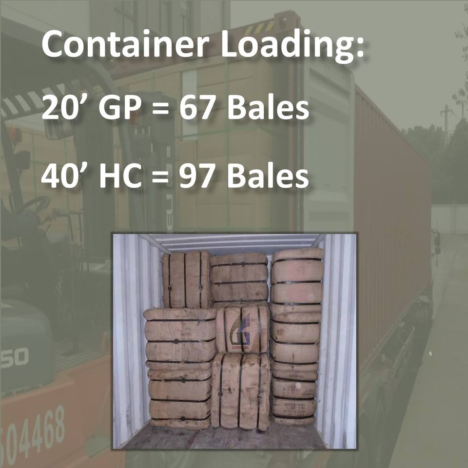 Loading:67 Bales per 20ft or 97 Bales per 40ft HC Container