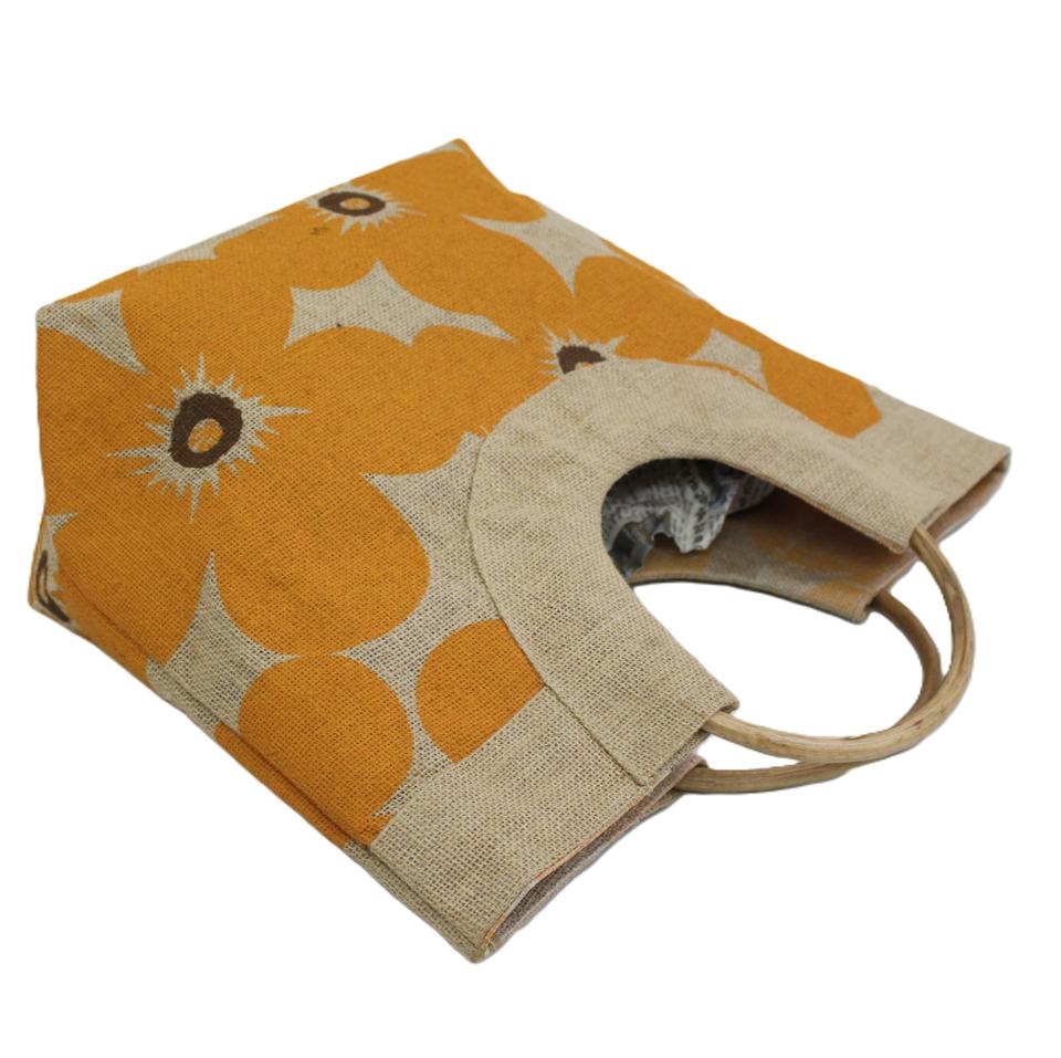Burlap Messenger Tote Bohemian Style With Wooden Cane Handle All Over Custom Design Print PP Laminated Jute Tote Bag