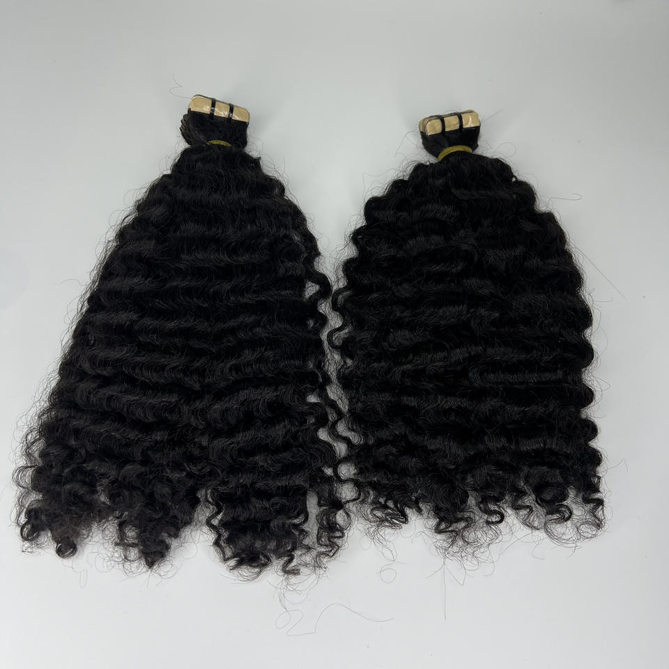 Burmese Curly With Natural Hair Weave Tape in 100% Raw Burmese Curly Human Hair Extension