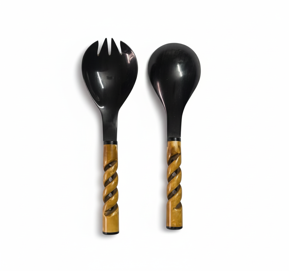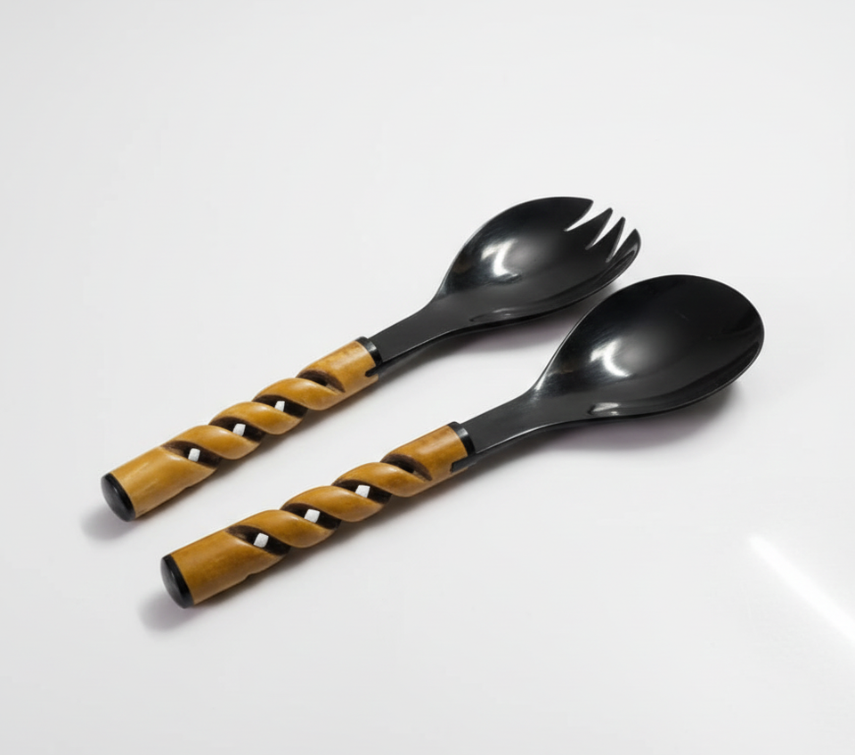 Burnt Buffalo Horn Serving Spoon with Twisted Handle | Handmade Natural Horn Spoon | Wholesale Eco-Friendly Tableware