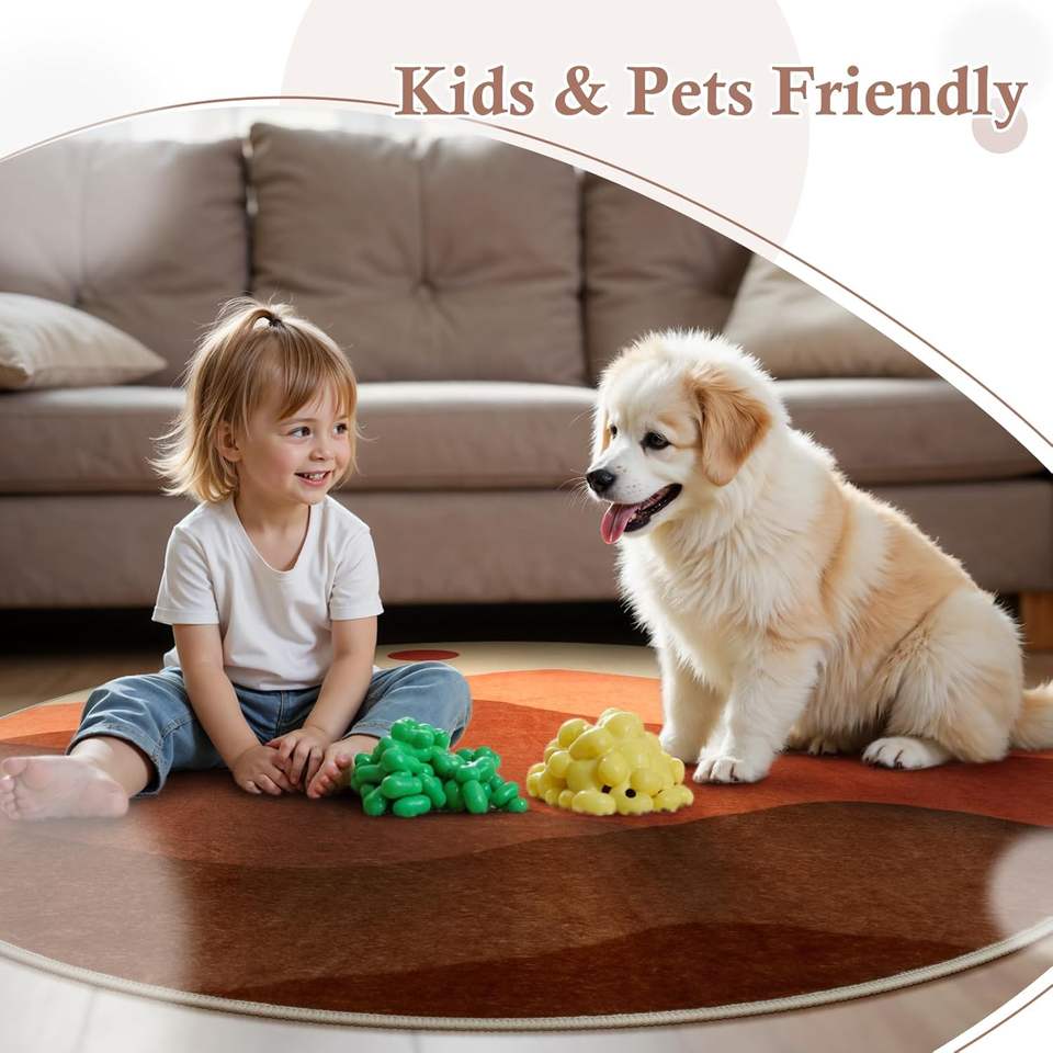 Burnt Orange Mountain Round Rug Washable Non Slip Low Pile Carpet Print on Demand for Living Room Bedroom