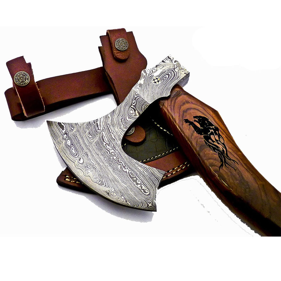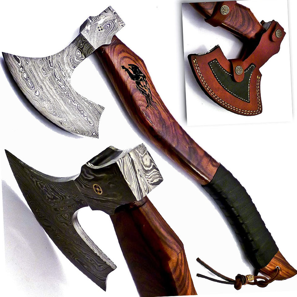 Burraq 19" Custom Handmade Damascus Steel DIY Industrial Splitting Axe Tomahawk Rosewood Handle Camping Hunting Outdoor Father's