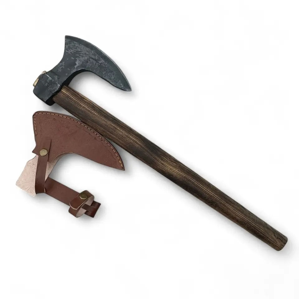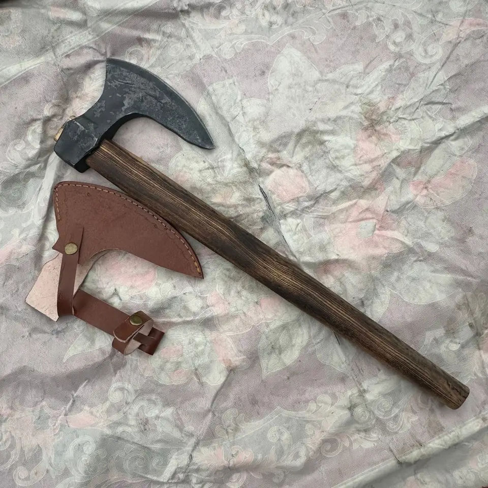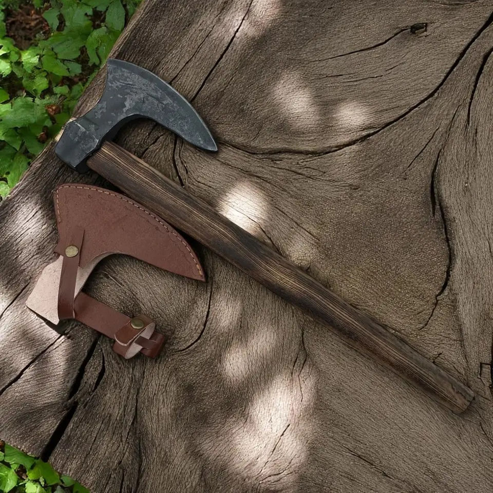 Burraq Custom 19.5" Carbon Steel Splitting Axe Tomahawks Bearded Rosewood Handle Leather Sheath Camping Outdoor Gift Dad