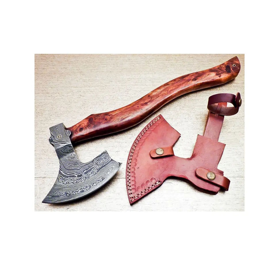 Burraq Custom 19.5" Damascus Steel Splitting Axe Rosewood Handle Leather Sheath Camping Outdoor DIY Gift Dad Handmade Industrial
