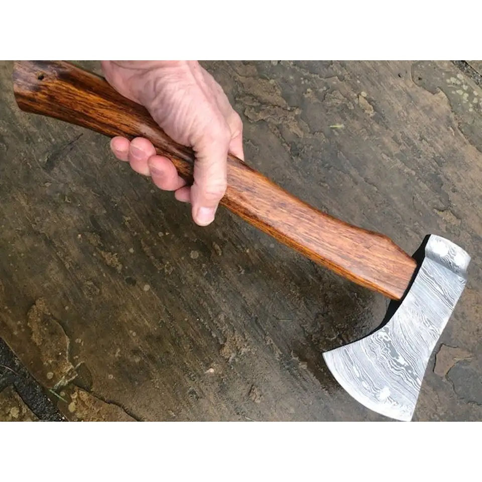 Burraq Custom 19.5" Damascus Steel Splitting Axe Rosewood Handle Leather Sheath Camping Gift Dad Handmade Industrial Grade