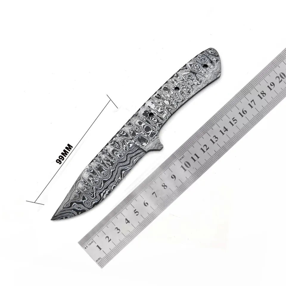 Burraq Custom Handmade Damascus Steel Blank Blade DIY Multi-Functional Rain Drop Pattern 7.5 Inches Knife Perfect Gift Outdoor
