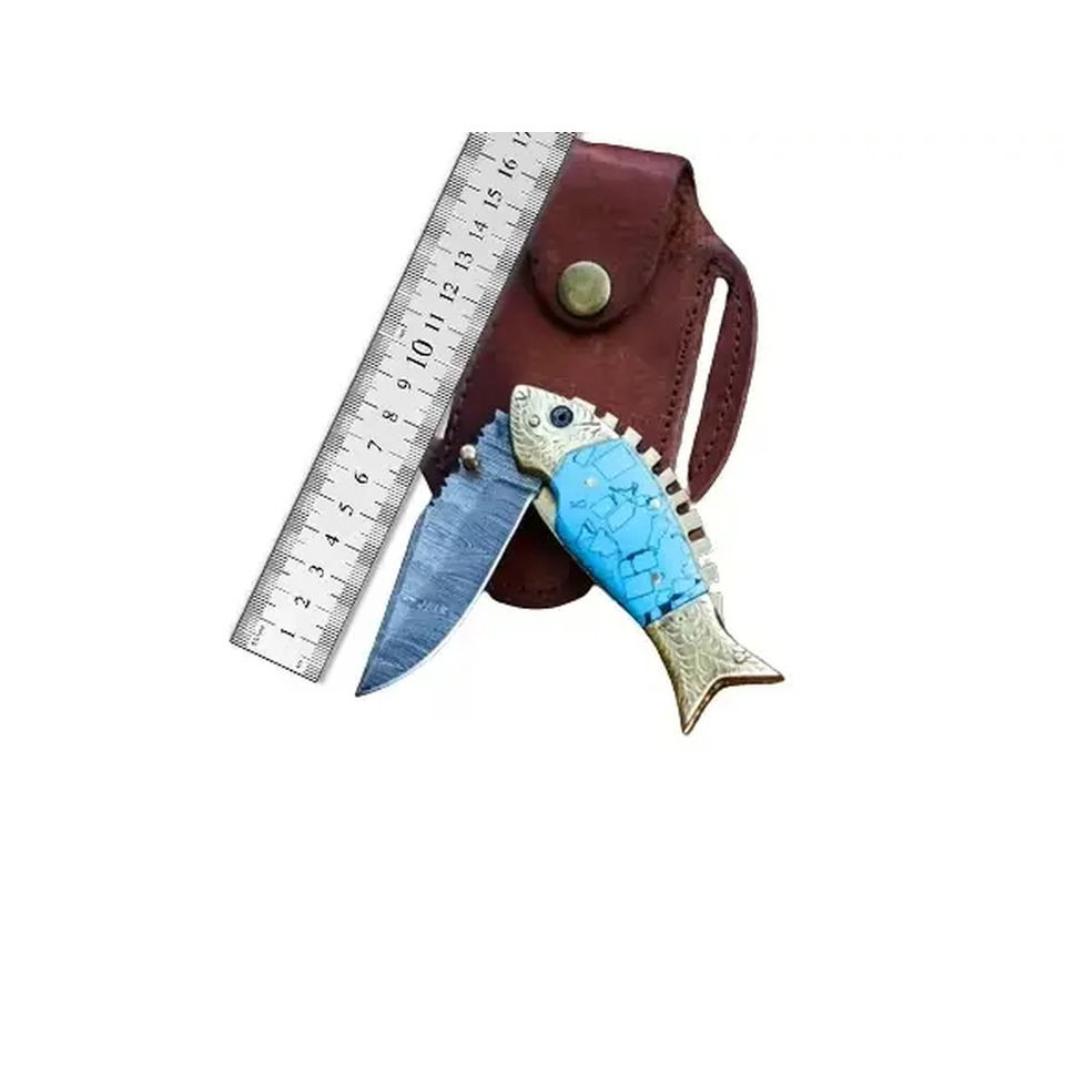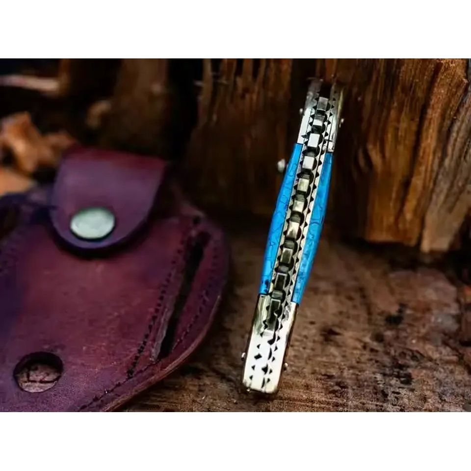 Burraq DIY Industrial Grade OEM Custom Handmade Damascus Steel Pocket Knife Leather Sheath Anniversary Gift Groomsman Present