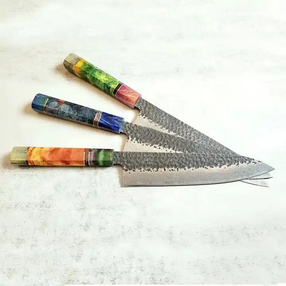Burraq Professional 3-Piece Handmade Carbon Steel Chef Knife Set Modern Wood Handle Ambidextrous Eco-Friendly Dishwasher Safe