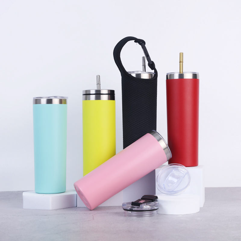 Business Gift Custom Logo Powder Coated 20oz Skinny Straight Mug Food Grade Double Wall Stainless Steel Tumbler