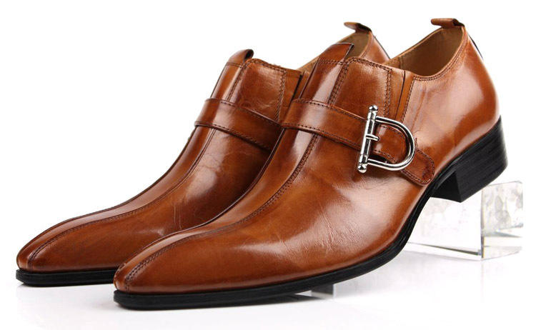 Business casual men's thick soled high heeled leather shoes loafers shiny leather formal wedding men's shoes