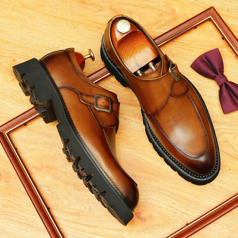 Business formal men's leather shoes - genuine leather breathable Oxford style with buckle fastening and casual style men's