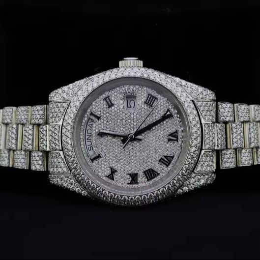 Bust Moissanite Diamond Watch Men Fully Iced Luxury Hip Hop Style Quartz Movement Glass Dial VVS Clarity Custom Bling Fashi