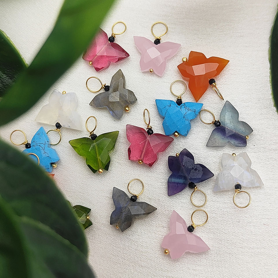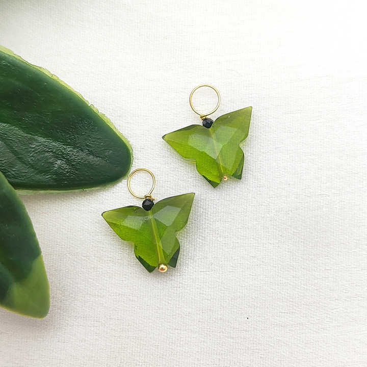 Butterfly Carved Peridot Gemstone Charm Pendant Gold Plated Fashion Jewelry Making Charm Pendant