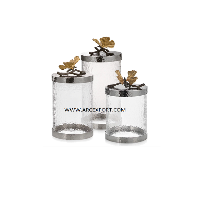 Butterfly Clear Glass Luxury Canister New Gold Color Fancy Design Decoration Canister