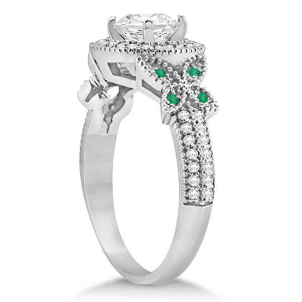 Butterfly Diamond Emerald Engagement Ring Band 0.50ct Marquise Cut Yellow Gold IGI Certificate Bezel Setting Platinum (0.50ct)