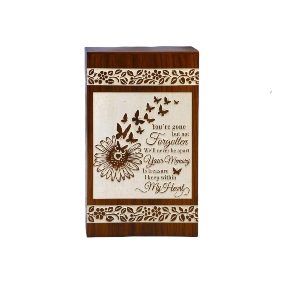 Butterfly & Flower Engraved Wood Cremation Urn Sheesham Memorial Box Keepsake Box Cremation urns For Adult Ashes