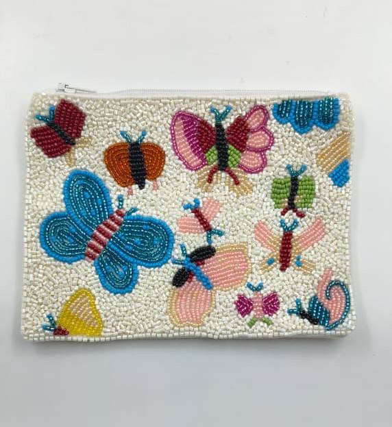 Butterfly Fully Hand Beaded Vintage Style Girls Key Pattern Cotton Rattan Coin Purse Soft Large Travel Jewelry Storage Bag