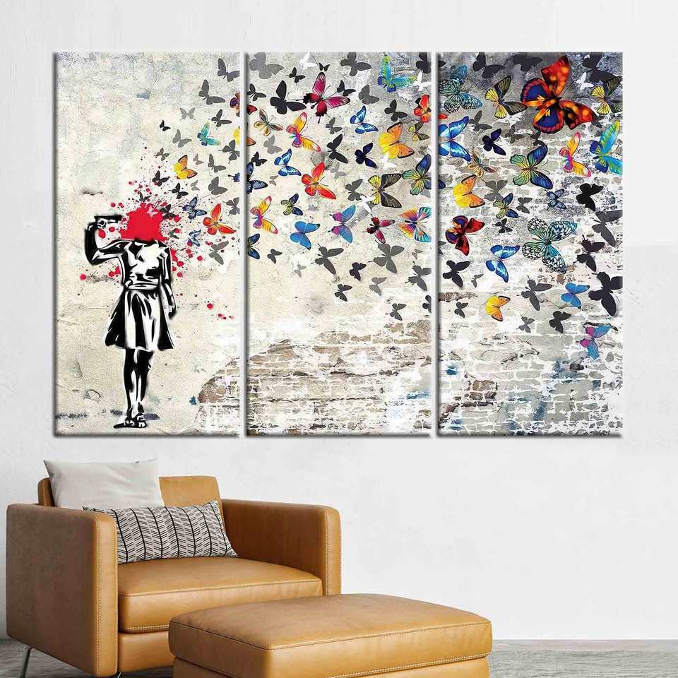 Butterfly Girl Suicide Printed Canvas - Street Art Inspired Abstract Artwork,3P:Gallery Wrapped