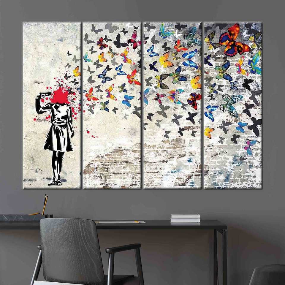 Butterfly Girl Suicide Printed Canvas: Street Art Inspired Abstract Artwork,4P: Gallery Wrapped