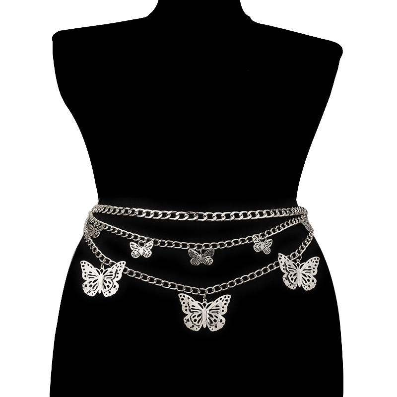 Butterfly Multi Layer Body Chain Zinc Alloy Women's Fashion Waist Chain Party Decorative Hollow Pendant Chain