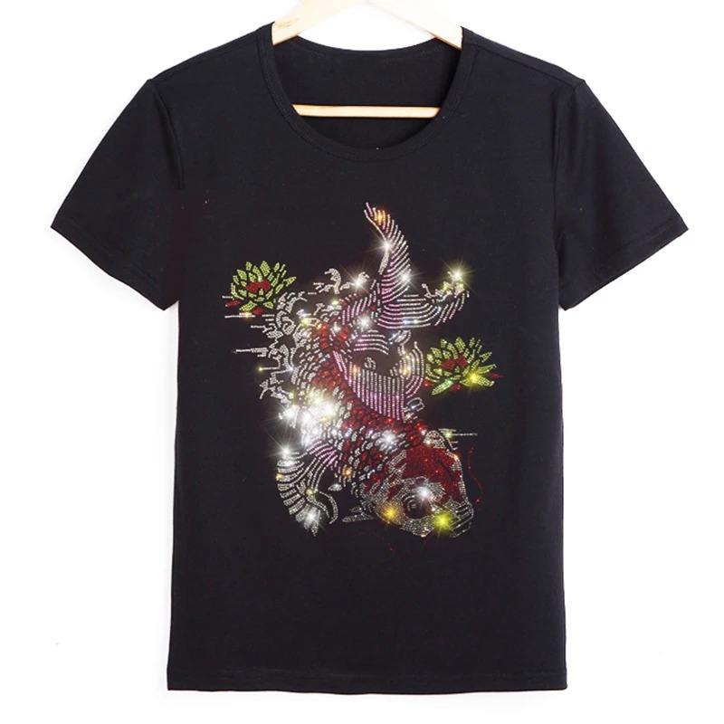 Butterfly Rhinestone Graphic Block Girl Crop Top American Party Club Streetwear Women t Shirt