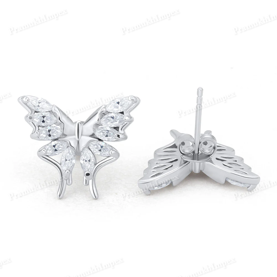 Butterfly S925 Silver Earrings D Color Moissanite Women Earrings Butterfly Design Stud Earrings for Women HipHop IcedOut Jewelry