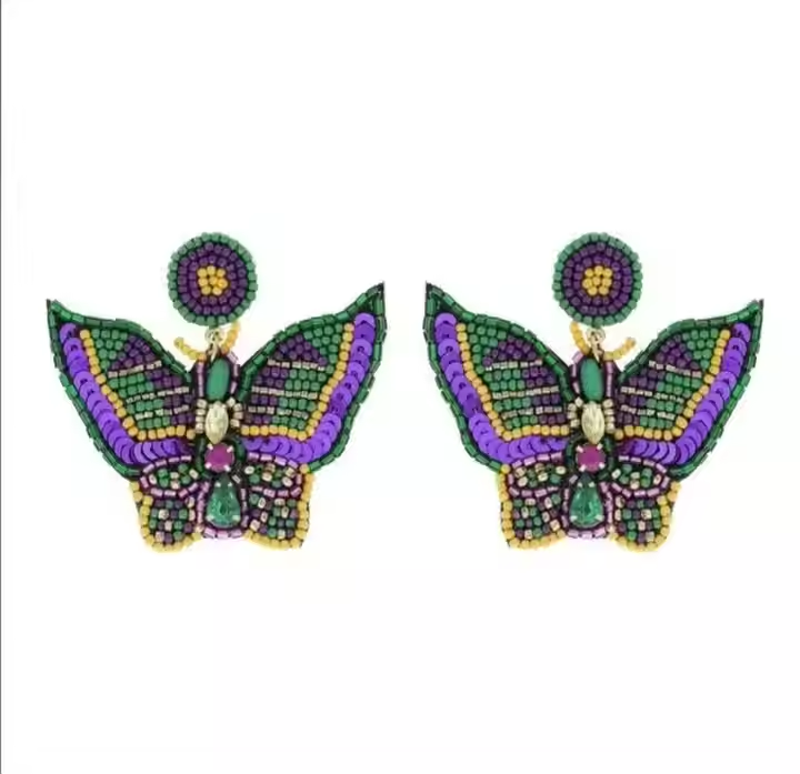 Butterfly Seed Beads Earrings Louisiana Mardi Gras Embroidery Earrings From India Handmade Earrings for Women by MD handicrafts