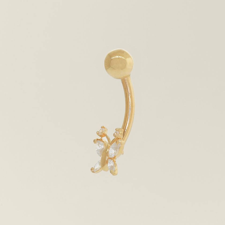 Butterfly Shaped 14 Gauge Gold CZ Curved Barbell Belly Navel Ring for Women's Intimate Piercing Jewelry for Gift