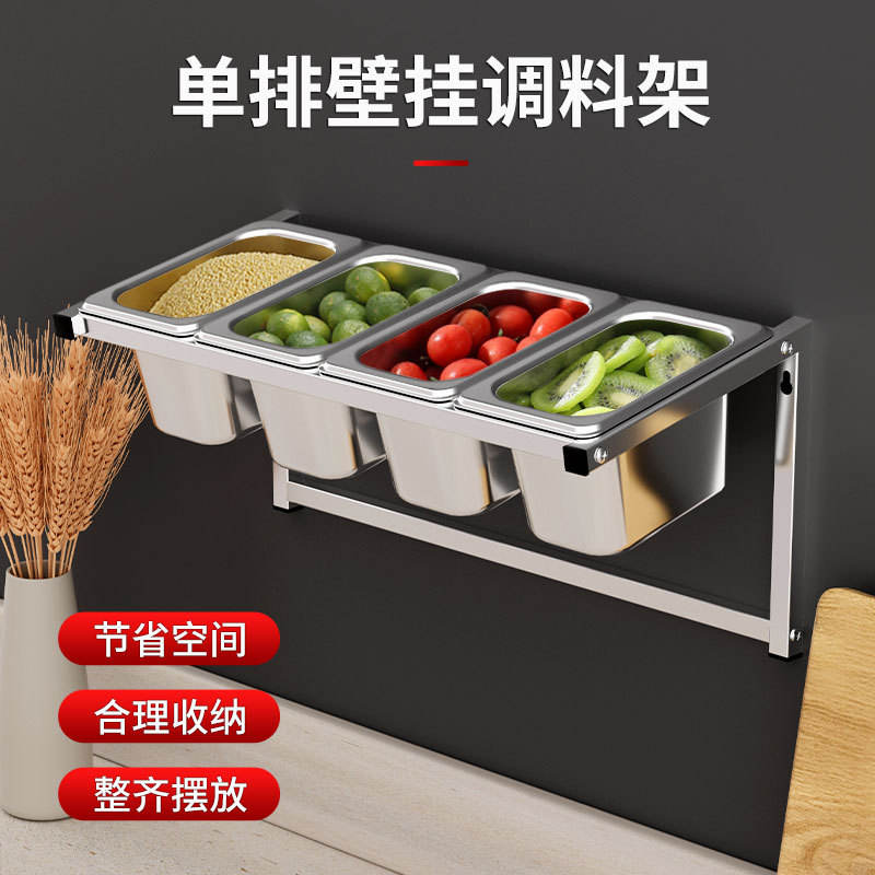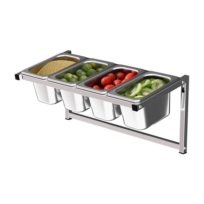 Butterfly Wall Mounted Condiment Rack Stainless Steel 4 Compartment Single Row Kitchen Spice Storage Serving Bowls