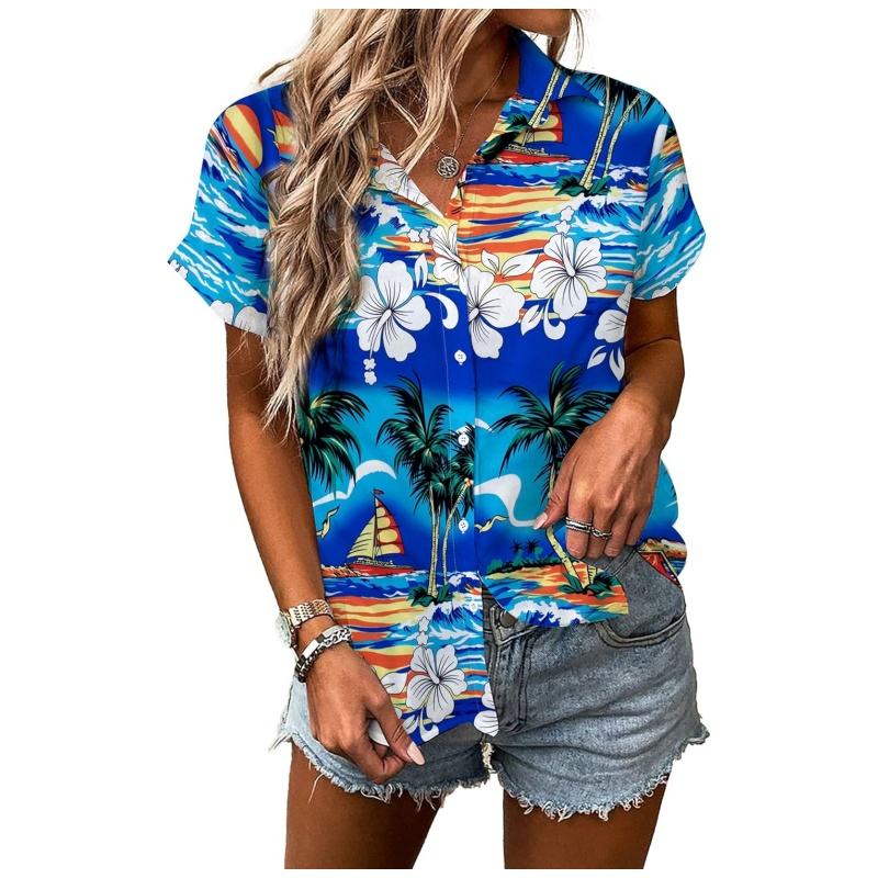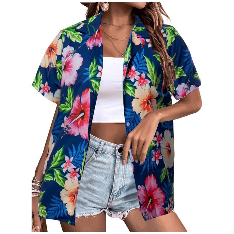 Button Down Shirts Soft Cool Summer Hawaii Shirts Floral Tropic Print V Neck T-Shirt Short Sleeve Button Up Tops