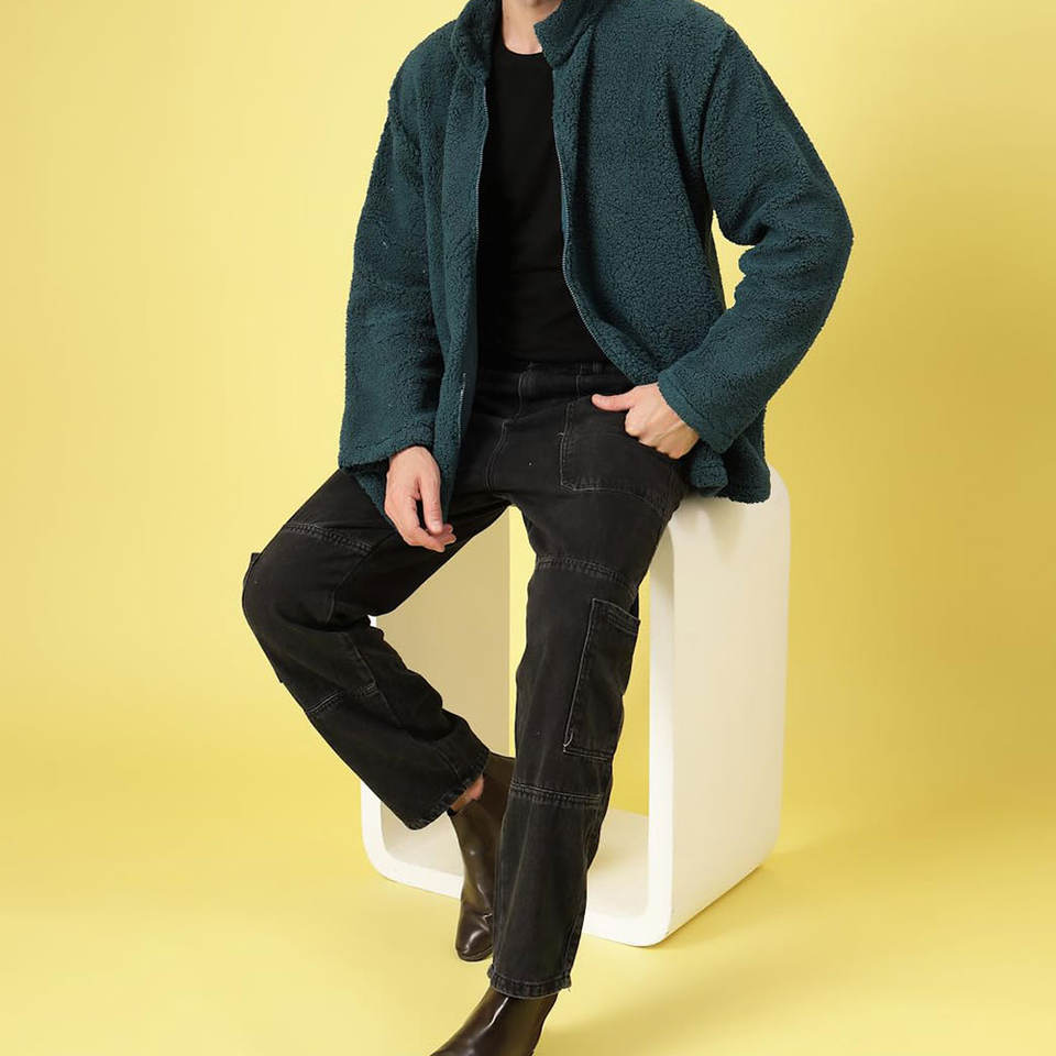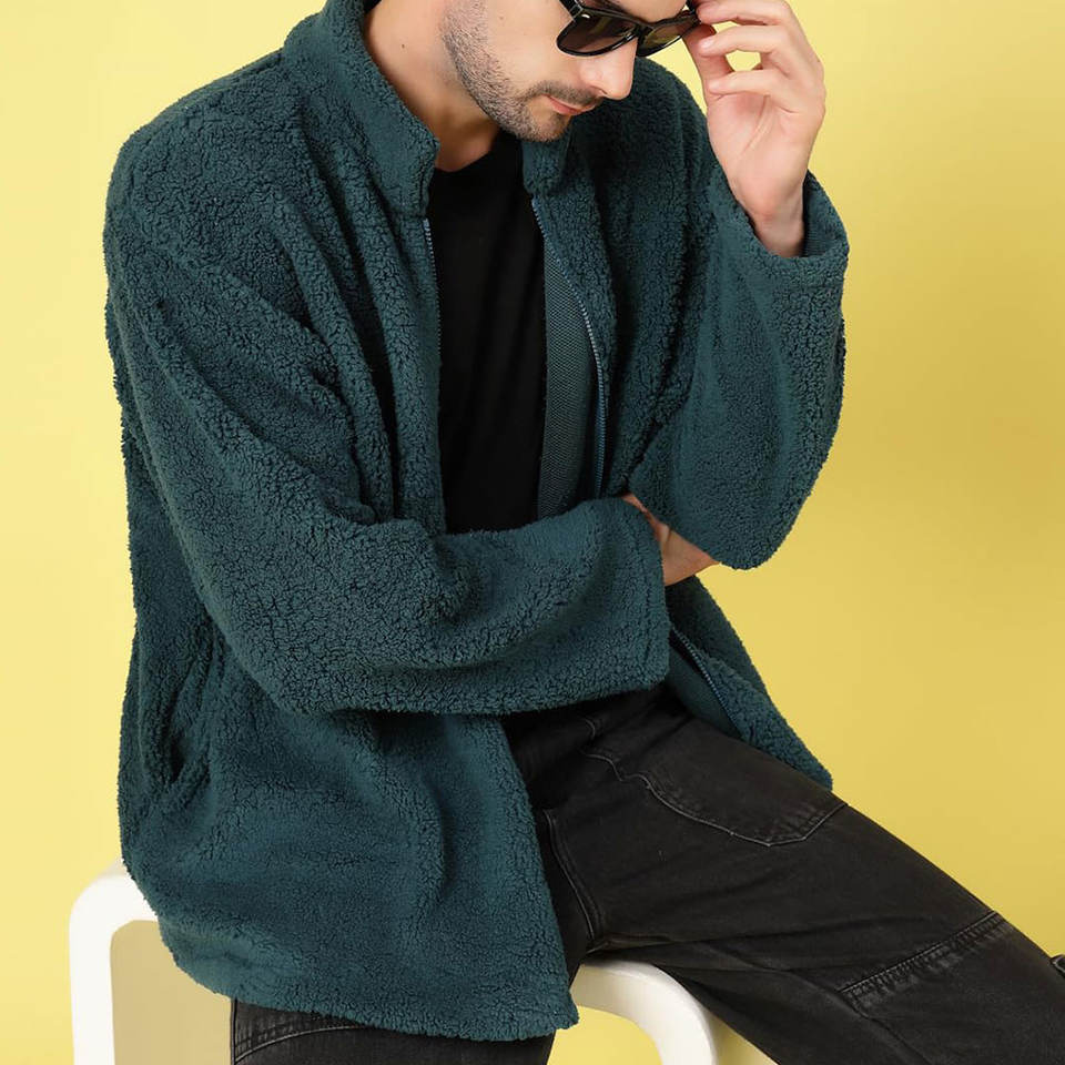 Button-Up Sherpa Jacket With Chest Pockets and Casual Fit Lightweight Sherpa Fleece Winter Jacket