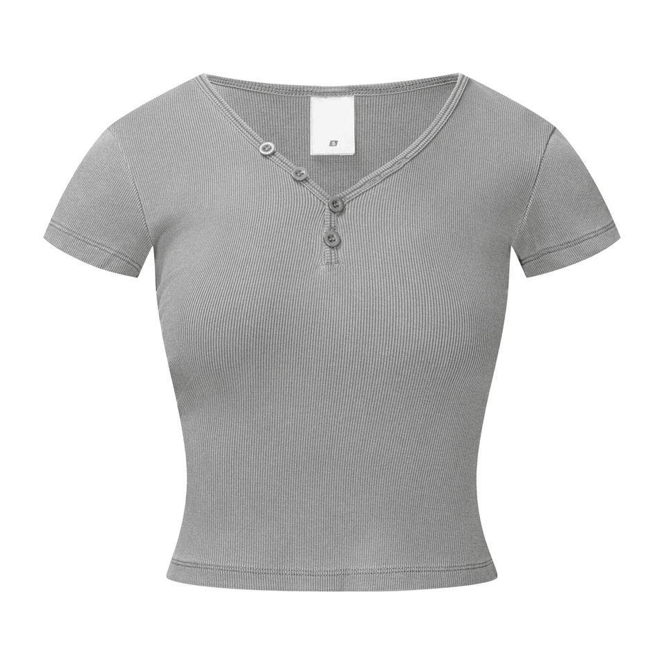 Buttoned V-Neck Short Sleeve Slim Fit 2025 Summer Retro Straight Shoulder Top for Spicy Girls