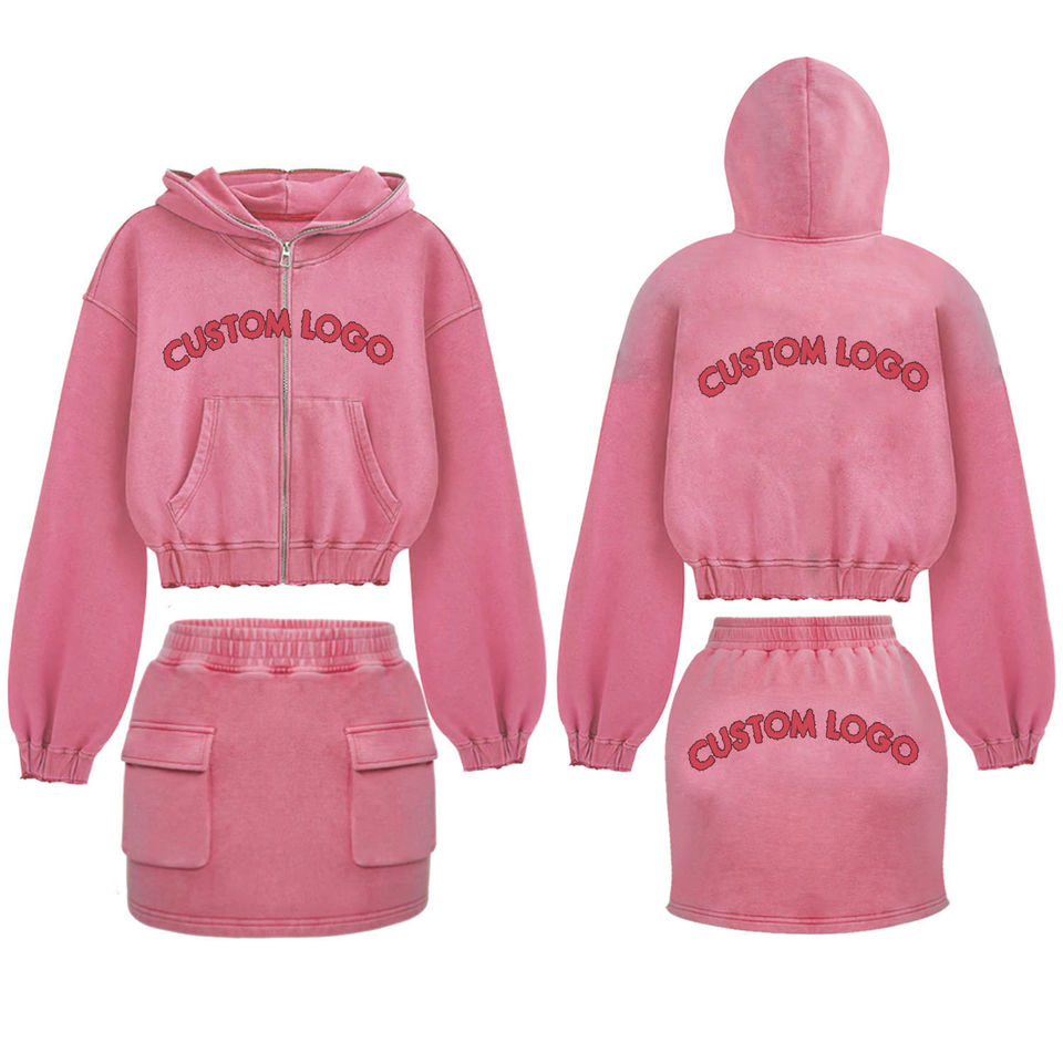 Buy Women Two Piece Set Crop Hoodie Skirts Outfit Fall Winter Canvas Fabric Short Tops Hooded Collar High Street Style