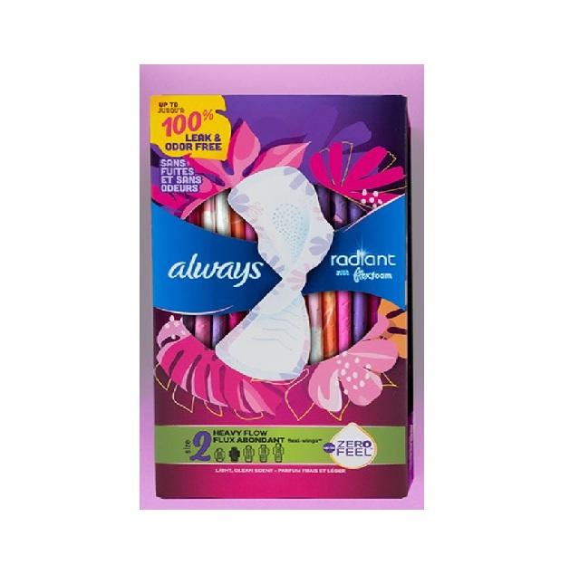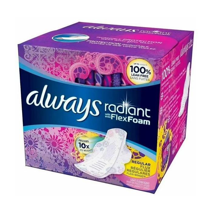 Buy Always Radiant Feminine Pads for Women Flexfoam Absorbent Soft Comfortable Clean Feel Bulk Pack Cheap Price Sale