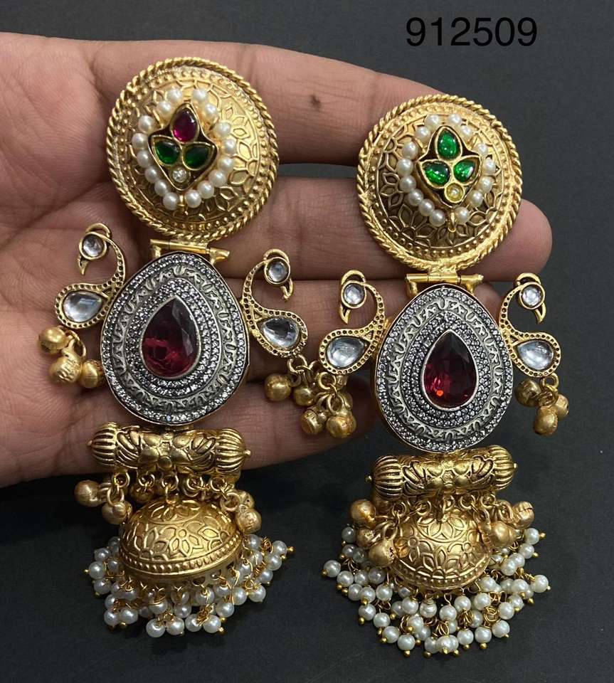 german silver gold plated jhumka earrings-20Model Number