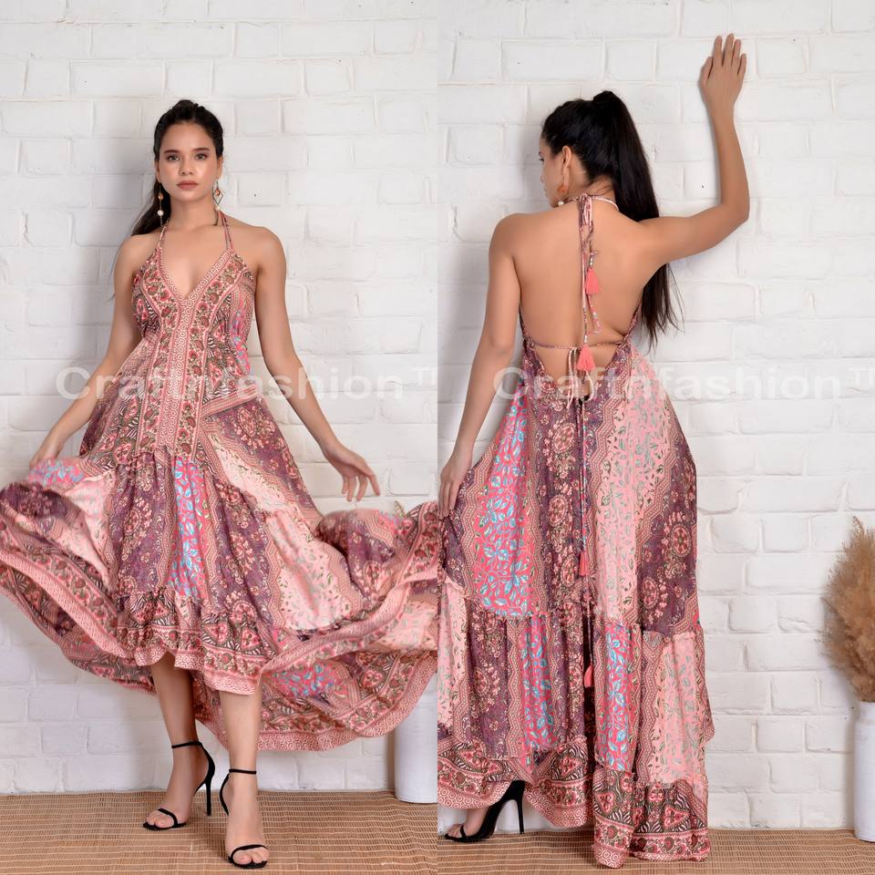 Buy Boho Summer Fashion Maxi Dress Flowy Long Maxi Dress Resort Wear Beach Party Wear Bohemian Silk Uno Maxi Dress