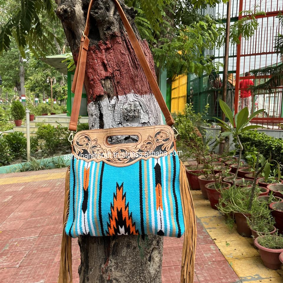 Buy Classic Design Smart Western Charm Women Shoulder Bag Fringe Traditional Saddle Blanket Tooling Design Premium Quality Bags