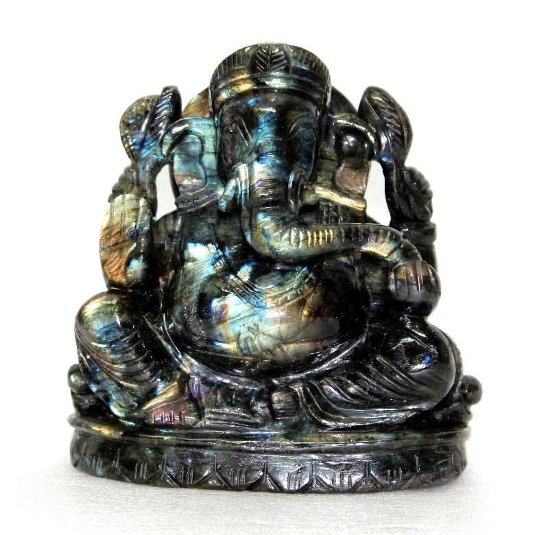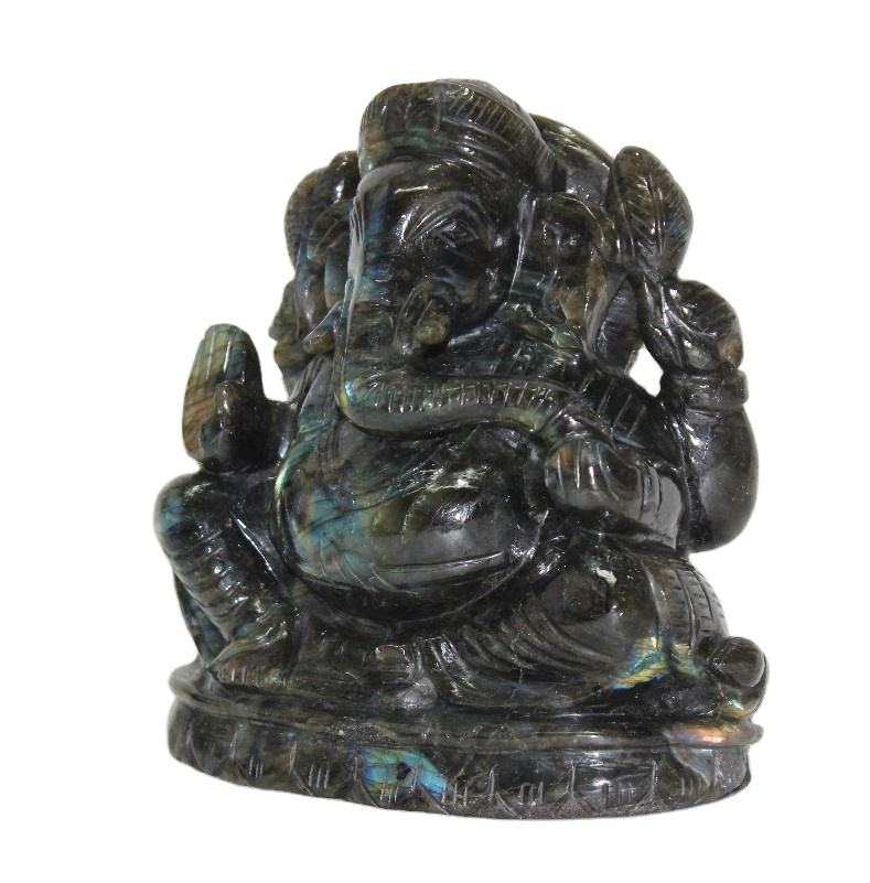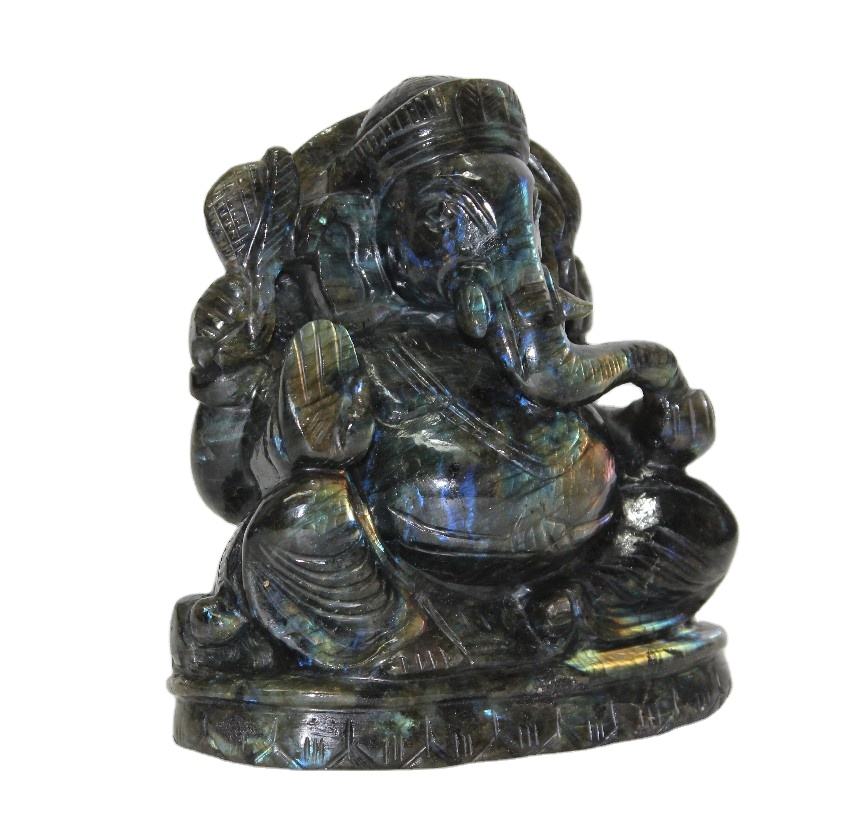 High Quality Natural Labradorite Ganesha Hand Carved Religious Sculpture Gemstone Figurine with Crystal Healing Properties